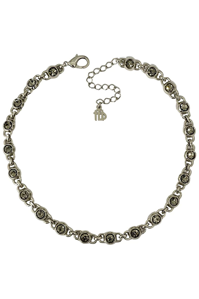 Colar formado por entremeios com aplicação de cristal black diamond, no banho prata.